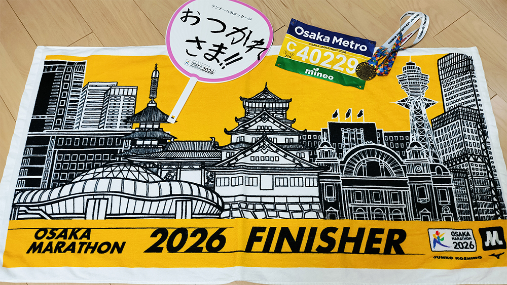 しかし、普段は絶対に出来ない大阪の街をランニングで駆け抜ける爽快感、また沿道のたくさんの人たちの声援を肌身で感じること、完走した後の達成感はなににも代えがたいものがあります。
