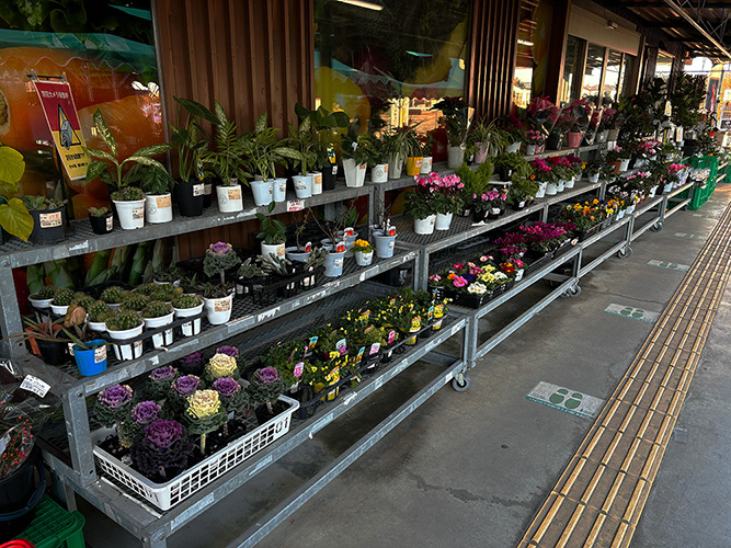外には草花も販売しており、地元の農業高校で作られた草花や野菜も販売している時期もあります。