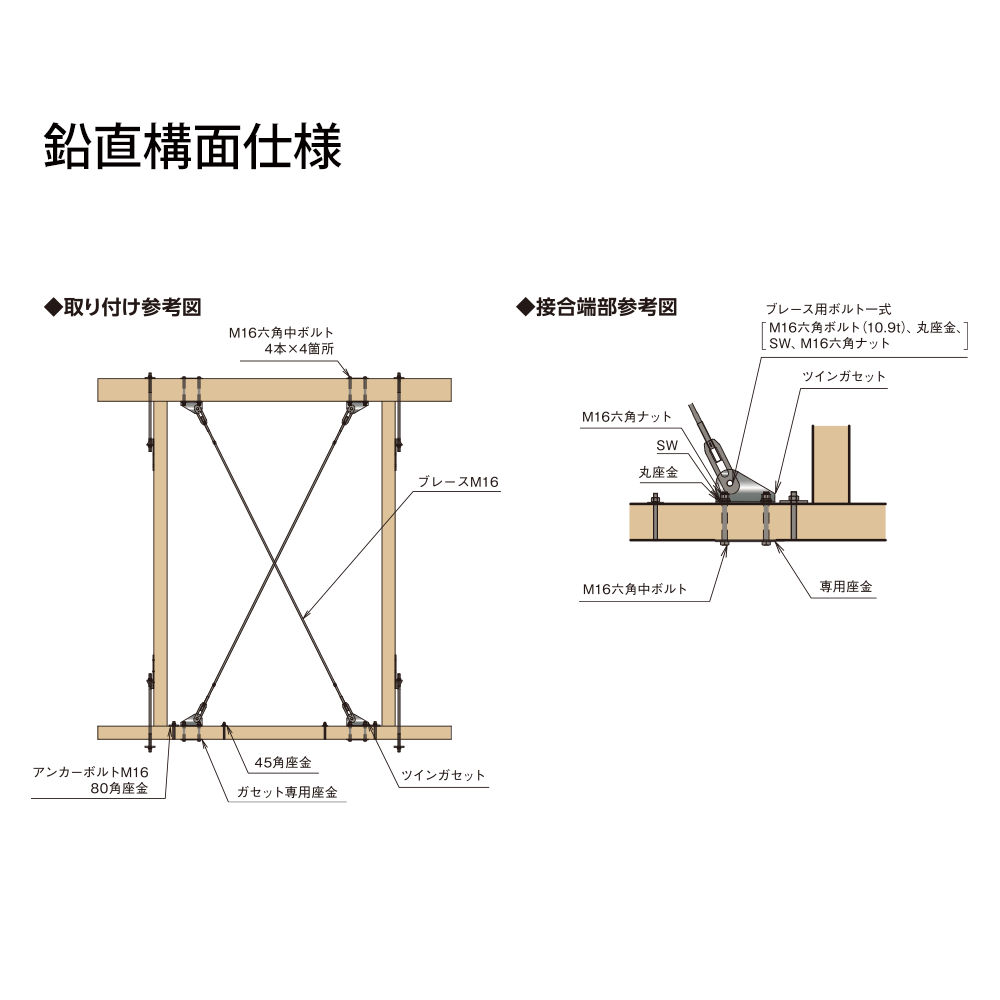 *3:ブレース接合ボルトはJIS B 1180 六角高力ボルト(強度区分10.9t)木材接合ボルトは強度区分4.6以上の六角中ボルトをご使用ください。