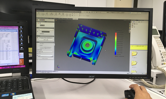3次元CADを駆使して、設計・応力解析を行います。これにより荷重がどこに集中するか、強度を持たせるために形状で工夫できないかの検証をして開発のスピード化をしています。