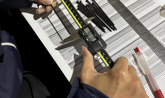 (クオリティーコントロール)入荷した量産品は、初品検品を行います。それぞれの商品に必要な寸法精度・表面処理状況・特性などを中心に厳しくチェックします。厳しい検査項目を満たした商品のみが、新商品として出荷されていきます。
